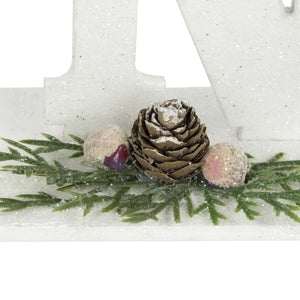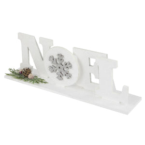 This NOEL sign will make a traditional statement with a modern twist. Designed with a winter white finish, it embodies the holiday feeling. Embellished with a silver snowflake, wintry pinecone, holly and berries, this sign fits into any Christmas decor. Perfect for mantles, side tables or as part of your holiday table centerpiece.