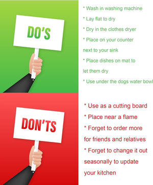 • This Dish Mat measures 14 inches X 22 inches and fits most counters and under most dish drying racks. Beautiful artwork printed on front side, Absorbent Drying Mat for Kitchen Counter is Non-slip