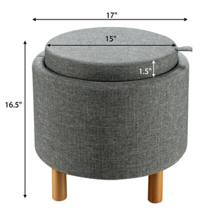 Round Fabric Storage Ottoman with Tray Non Slip Pads for Bedroom (Gray)