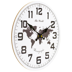 Round Wall Clock with Continent Design 12" Battery Operated for Home Decor