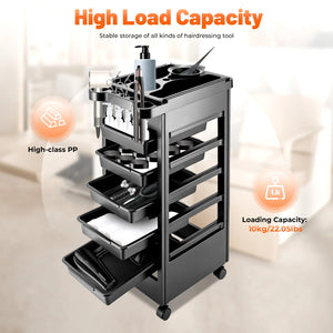 Do you want a great helper that can hold items and make it quicker and easier to find your hairdressing tools? Then try this 5-layer salon rolling trolley cart! It is made of high-quality PP, so you do not have to worry about hair coloring supplies or other corrosive things that will make it damaged. And it not only has 5 layers, but the top classified design also allows you to sorted store a lot of things!