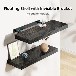 Set of 3 Floating Wall Shelves with Invisible Brackets (Black)