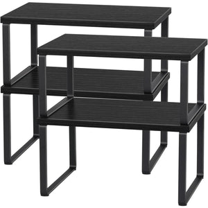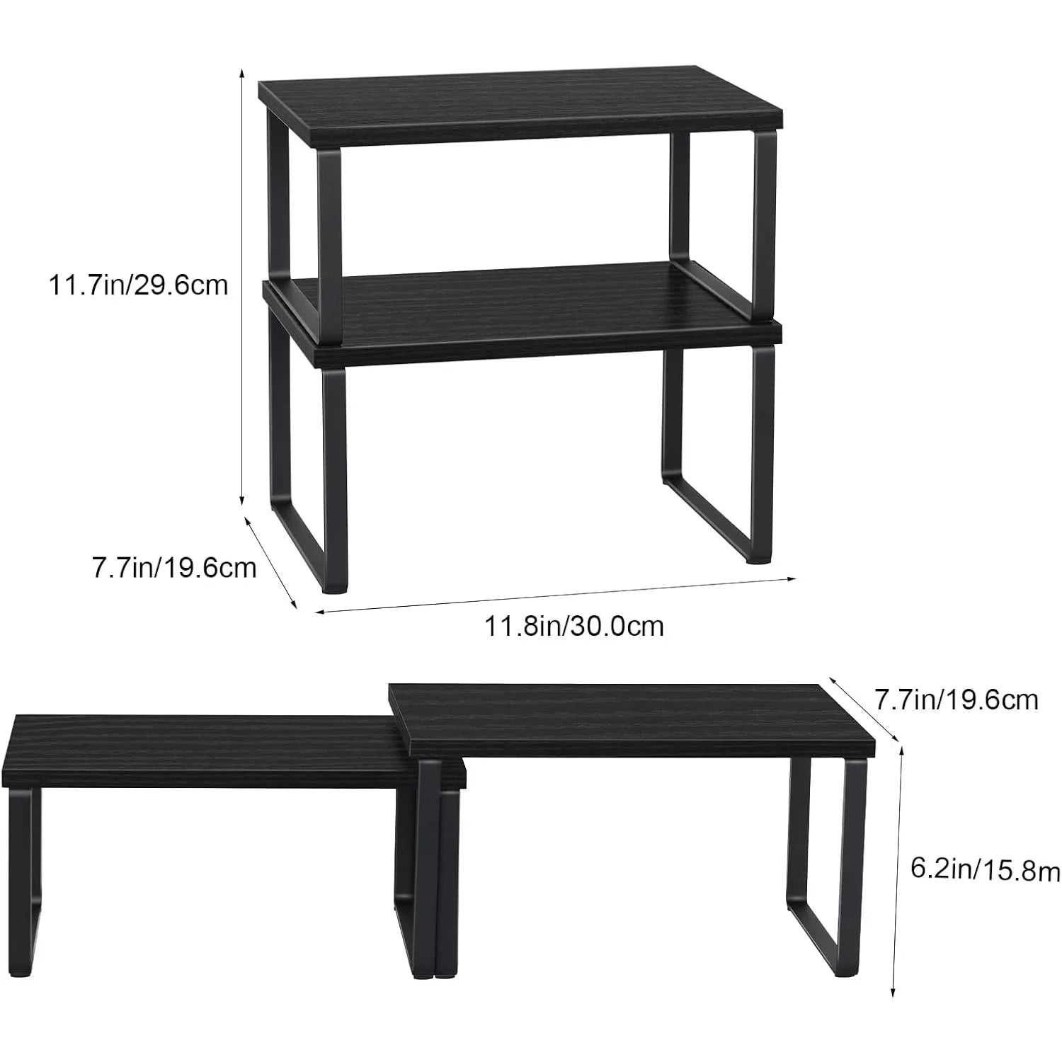 Kitchen shelf organizers release more space for small and crowded spaces, making the countertop more tidy and spacious. Ideal for kitchens, bathrooms, living rooms, dorms, and study rooms or small spaces.