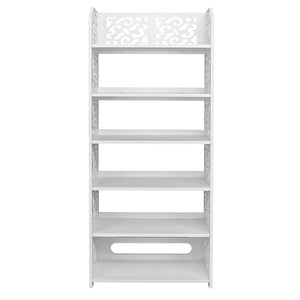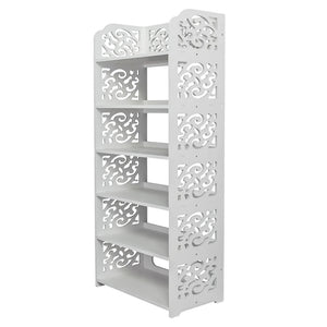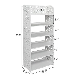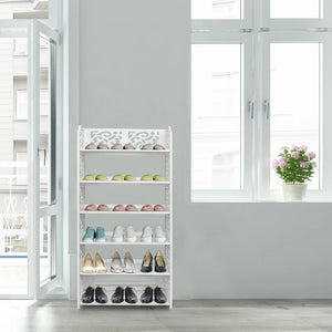 Shoe Storage Rack 6-Tiers Carved Wood-Plastic (White)