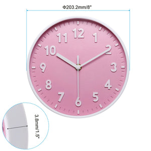 Silent Decorative Clock 8-Inch Battery Operated Clock (Pink)