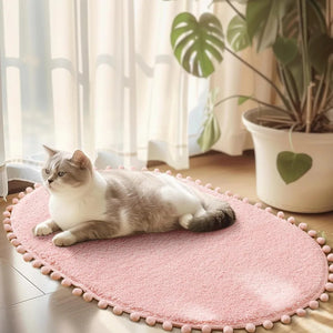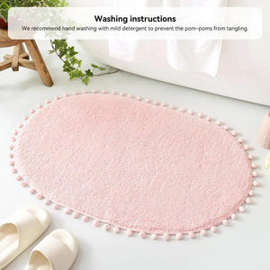 Unique and Stylish Design: Our bedroom rug features a distinctive oval shape that sets it apart from ordinary mats. The playful pom pom decorations surrounding the edges add a touch of charm to any home decor, making it a perfect fit for various interior styles. Whether your bathroom is modern, vintage, or minimalist, our living room rug effortlessly complements the ambiance and enhances the overall aesthetic appeal.