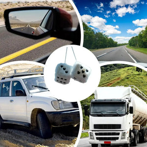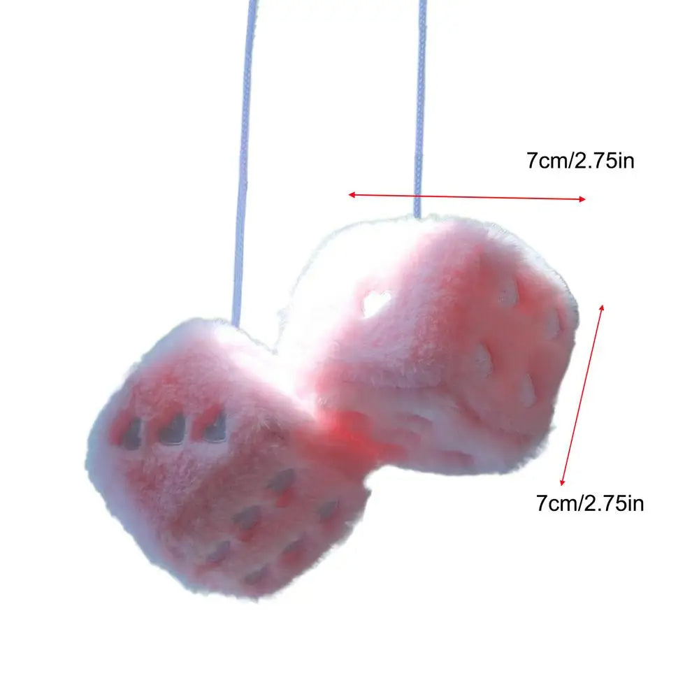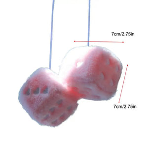 Soft Plush Dice Car Mirror Dangler with Lucky Heart Design Car Acessories (White)