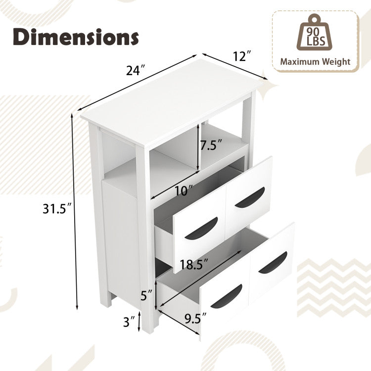 ● Versatile Storage Solutions: This floor storage cabinet offers ample storage with 2 open compartments for easy access to frequently used items. Coupled with 2 drawers for smaller items, it provides a mix of open and concealed storage options.