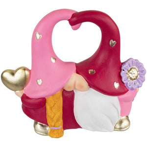 Celebrate love in the enchanting world of whimsical Gnomes with this charming Valentine's Day decoration. Meet the adorable couple, where the boy gnome sports a long white beard and the girl flaunts braided pigtails. Watch as they share a sweet kiss while holding a heart and a flower, capturing the essence of affection. Their intertwined hats form a heart shape, adorned with delicate gold heart accents. Add a touch of magic to your Valentine's Day decor with these kissing Gnomes, spreading love and joy in the most endearing way.