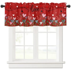 Valentine's Day Heart Window Valance – Red & White "Love" Script Curtain