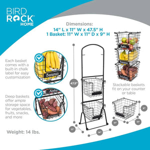 STACKABLE DESIGN: Designed for flexibility, each basket can be removed from the stand and stacked on top of each other. This space-saving feature is ideal for customizing your storage needs and optimizing your kitchen or pantry organization.