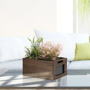 The Wood Storage Crate With Chalkboard is the multi-functional storage option you've been shopping for. Use this beautiful, 11. 5" x 8. 3" x 6" handcrafted crate not only to store small household items, but as a decorative piece for any gathering, a buffet riser for any party, or in any children's' room to help them learn spelling and organizational skills. The uses for this gorgeous storage crate are endless. Personalize your space and write anything you desire on the featured 4. 75" x 3" chalkboard. Also featured are two cut-out handles and a rich, brown stain. The chocolate color will add luxury to any room and any décor style —especially farmhouse, modern, minimalist, industrial and coastal styles.