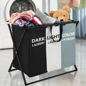 Solve the laundry sorting pain point: Store dark, light, and colored clothes in separate compartments in advance, avoiding color bleeding caused by mixed washing. It makes the laundry process more efficient and saves you from the frustration of finding your clothes dyed after washing.