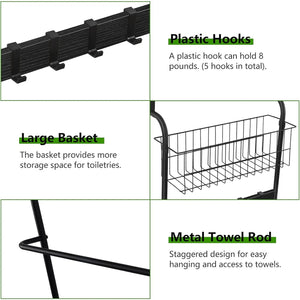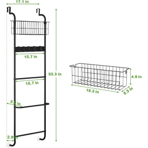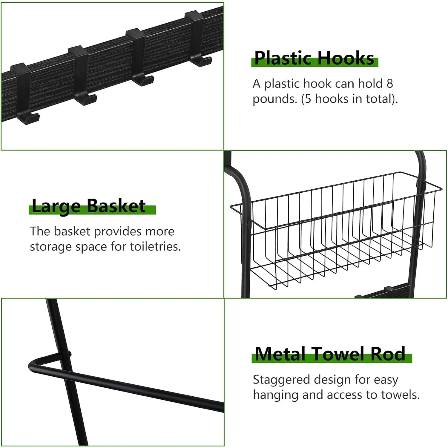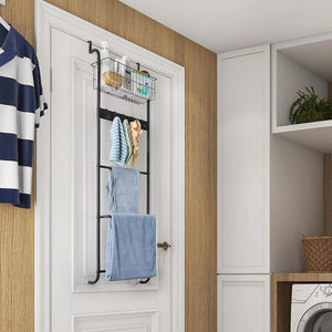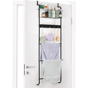 Large Capacity - Over the door towel bar with basket and hooks has a good storage function. It makes efficient use of the back of the door to hang towels and bathroom accessories.