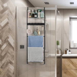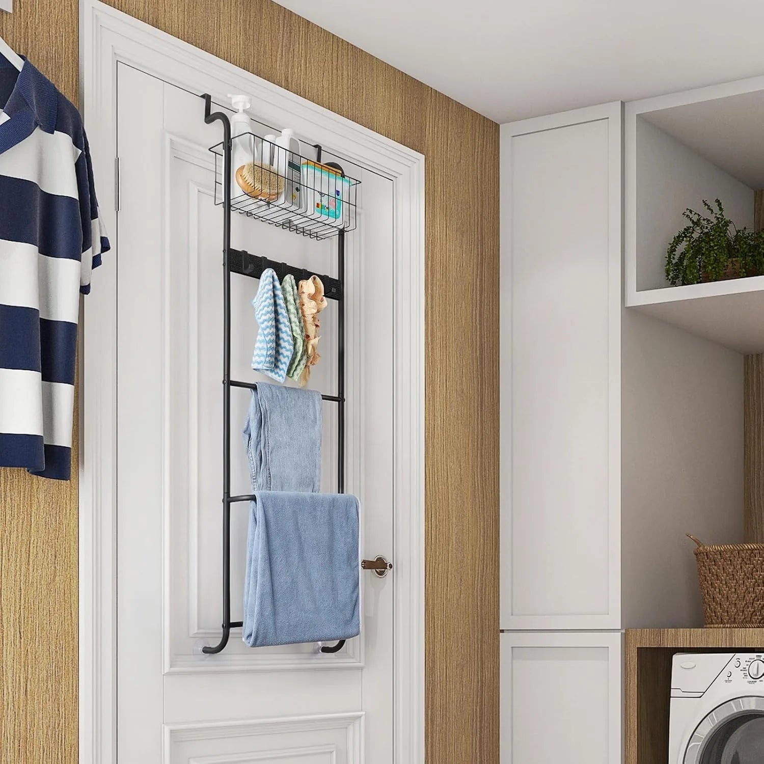 5-Tier Over Door Metal Towel Rack Heavy Duty Bathroom/Bedroom Organizer (Black)