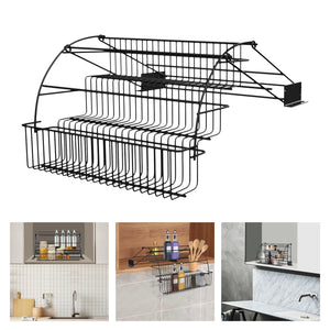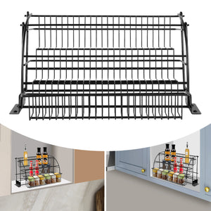 Expandable Pull-Down Kitchen Rack – 3-Tier Metal Cabinet Storage System