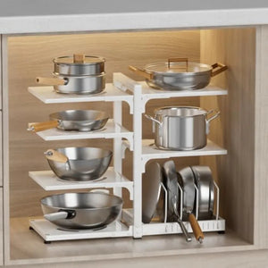 • Kitchen Cabinet Organizer: Transforms cluttered cabinets into a highly functional storage system, making it easy to grab the exact item you need without unstacking others.