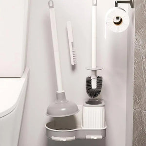With its innovative design, this set eliminates the need for other cleaning tools and keeps your bathroom clean and tidy. The wall-mounted design makes it easy to store, and the removable brush head ensures easy maintenance. Plus, using this set can even make you happy!