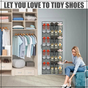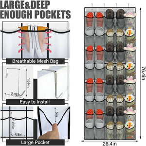 Large Breathable Mesh Pockets: the hanging shoe rack has a breathable mesh, which makes it easy to see and find stored items, while helping to prevent shoes from getting dust and dirt, the door shoe rack will bring you a lot of convenience