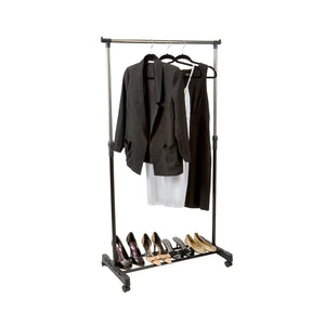 Single Tier Adjustable Height Rolling Garment Rack, Metal, Black and Silver