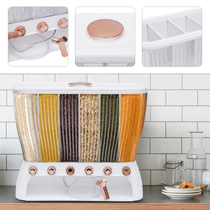 6-Grid Dry Food Dispenser Grain Storage Container for Kitchen