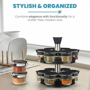 360° Rotating Design: Easily access any spice jar with a smooth, effortless spin.