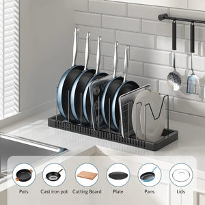 • Versatile Organizer Holder: Functions as a dedicatedPot Lid Organizer Holder or as a comprehensive rack for your entire cookware set.