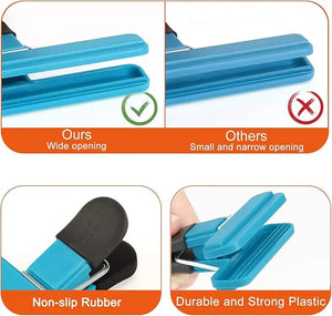 【Upgraded Wide Opening】Enlarge the opening of the clip, easier to open and close than other similar bag clips. Package Includes: 4 Large clips (6" W x 3.5" H) & 4 Small clips (3" W x 2.5" H). 8 PCS Clips with 4 different colors - Rose red, light green, blue and mint.