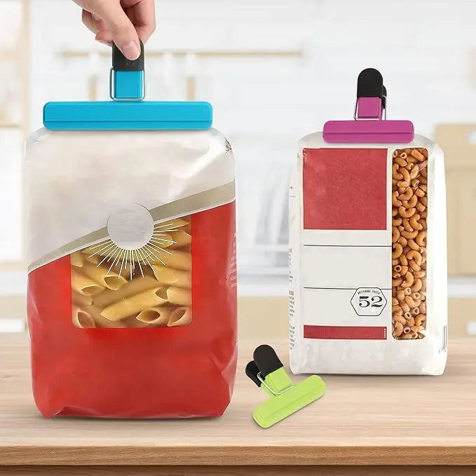 【Widely use】This sealing clip is suitable for all kinds of plastic bags and opened food bags, such as bread, frozen veggies, chips, candies, nuts, etc. It also can be used in the office as a file clamps.