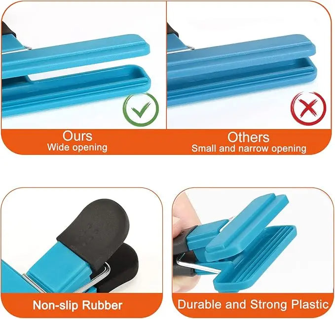 【Durable & quality material】It is odorless, thick, strong and has great spring tension. Using sealing clips is good for keeping food fresh. They are sturdy and durable for long term use.