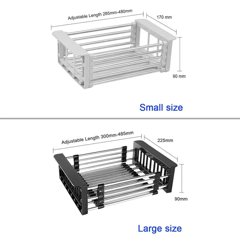Internal length: more than 290 mm, internal width greater than 215 mm.ABS edge does not hurt hands, select materials, fine workmanship does not hurt the sink.