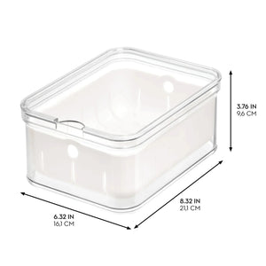 Buy multiple Crisp Bins to create an interlocking storage system suitable for your space! The top and bottom ledges allow the container to be easily stacked to maximize space in your refrigerator. The bin also slides on top of the larger Crisp Bins for quick access to your food, or stack another bin of the same size on top for multi-level organization. This Crisp Bin measures $8.32" \times 6.32" \times 3.88"$ for easy storage in your refrigerator, freezer, pantry, or cabinet. It is also great for shelves, countertops, desks, kitchen tables, dining tables, islands, or anywhere else in your home!