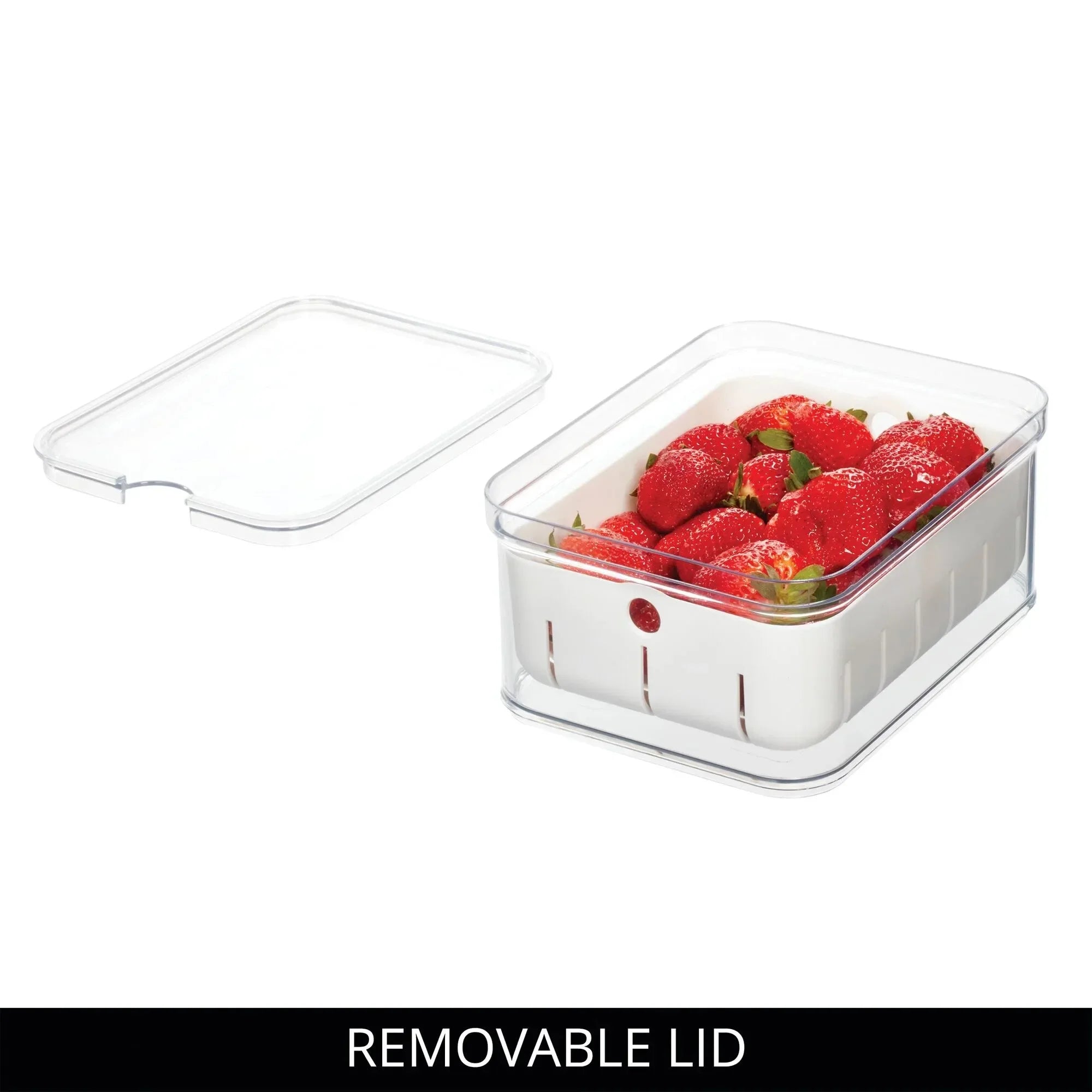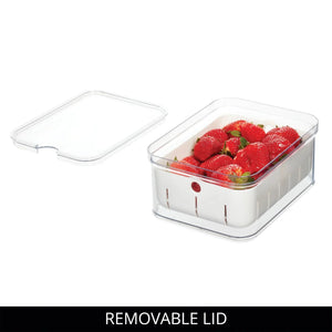 The inner basket is removable so you can easily rinse your berries under the kitchen sink. Water drains from the bottom, preventing your berries, fruits, and vegetables from soaking. The open-bottom design allows for airflow, prevents the growth of bacteria and mold, allows produce to breathe, and keeps produce fresher for longer.