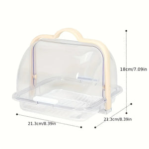 1. Keep your cakes fresh and secure with this transparent plastic reusable flip cake box with a reinforced handle for easy carrying. Perfect for transporting your baked goods to parties or events.