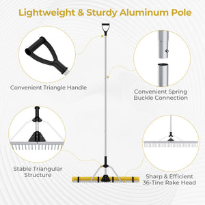 ● Strong Aluminum Frame: Made of high-grade aluminum, the weed rake combines strength and rust resistance with lightness, ensuring easy handling. Besides, it comes with a triangle rake head that ensures exceptional stability.