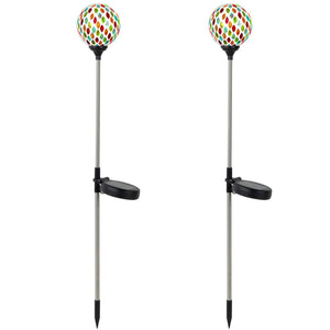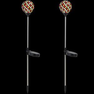 Set of 2 mosaic stained glass solar-powered LED pathway markers