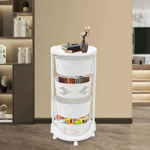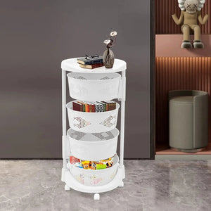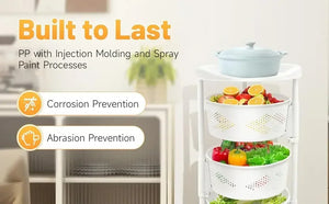 Storage Assistant: The round top platform and 4 large-capacity baskets allow you to easily place and access various items such as fruits, vegetables, towels, and wash supplies (not included), making full use of vertical space and keeping items neatly organized.