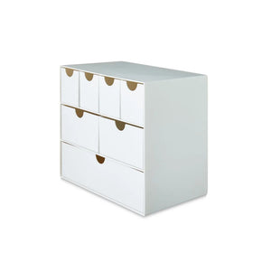 The  7-Drawer Teacher Box is perfect for organizing and tidying your office or classroom.  This storage item offers plenty of space for storing office supplies, teaching supplies, or school supplies.  The seven included storage drawers make staying organized even easier.  The white color goes with any office or classroom decor.  Add some organized style to your space with the  Seven-Drawer Teacher Box!