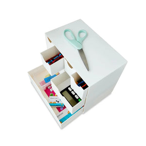 Storage box with seven drawers for storage and organization White color goes with any office or classroom decor Measures 10. 38 inches x 6. 38 inches x 9 inches Fits most writing utensils, including colored pencils, grading pens, markers, and more Perfect for storing office supplies or classroom supplies Rectangular shape fits almost anywhere for easy storage
