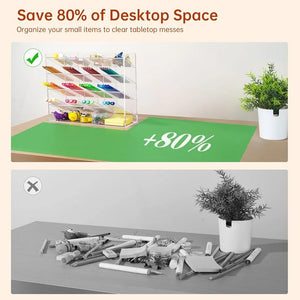This desktop organizer offers ample storage space and will surprise you with its capacity. It is suitable for storing markers, makeup, pens, pencils, office supplies, art supplies, and more - The marker organizer with a vertical design can effectively create more space on your desk. It accommodates 15 pen holders, yet it only takes up the space of 3 pen holders. The product dimensions are 10. 2 * 13 * 3. 9 inches. This organizer is suitable for items that are less than 7. 5 inches in length - The acrylic material is sturdy and durable. Due to its transparency, the acrylic pen holder can keep your desktop looking spacious even after being used. This clear pencil organizer is appropriate for tabletops of various colors and materials - This is a pen holder with 17 compartments, which allows for easy organization. Items can be sorted by color or type, resulting in a neat appearance. Retrieval and put back after use are both effortless - This pencil holder is versatile and can be used on office desktops, bedroom desktops, teacher desktops, Dressing table desktops, and children's desktops for those who enjoy art creation. It makes a great gift too. A tidy desk is always a mood booster, don't you think? Pen Organizer Marker Organizer