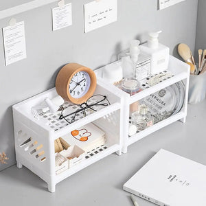 Multifunctional 2-Tier Plastic Shelf Organizer Desktop Storage for Cosmetics, Stationery, and Kitchen Sundries