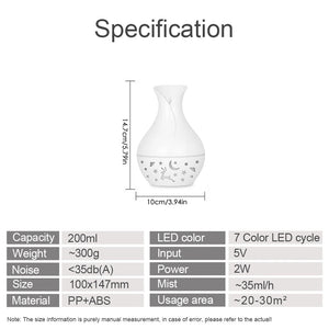 200ML Capacity: Featuring a precise 200ML water tank this humidifier ensures optimal moisture levels preventing over-humidification while maintaining a comfortable environment.