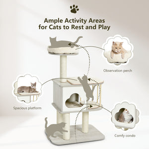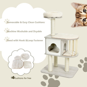 Wooden Cat Activity Tree 46" with Platform and Cushions for Pets