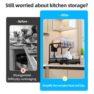 Keep your kitchen counter organized and your dishes sparkling clean with our versatile 2-tier dish drying rack! This space-saving solution is designed to efficiently dry your dishes, cutlery, and more, while keeping your countertop tidy.