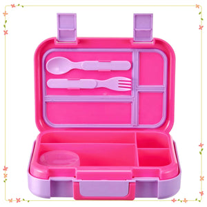 • Plastic Bento Box with 4 Compartments, 1 Fork, 1 Spoon and 1 Dressing Container. High Quality Material: Our lunch box is made of high quality food grade material , BPA free, it is the best lunch box /lunch food container for packing healthy food, odorless, durable, reusable, stain resistant and washable. Multi-functional 4 Compartments: We understand that you may carry different types of food for your lunch. The independent design of space division is very important. The children's bento box with four separate compartments is a great design to meet your lunch needs. Special Design: with spoon and fork, embedded cutlery storage, do not worry about forgetting to bring cutlery. Keeps meals and snacks fresh and mess-free during transport – Designed with 2 kid-friendly latches that are easy for small hands to open and close. Easy to Carry: The lunch box is compact and easy to carry, you can easily put it in your bag. It is a good choice for parents to buy them for their child(ren) as it is perfect for school students.