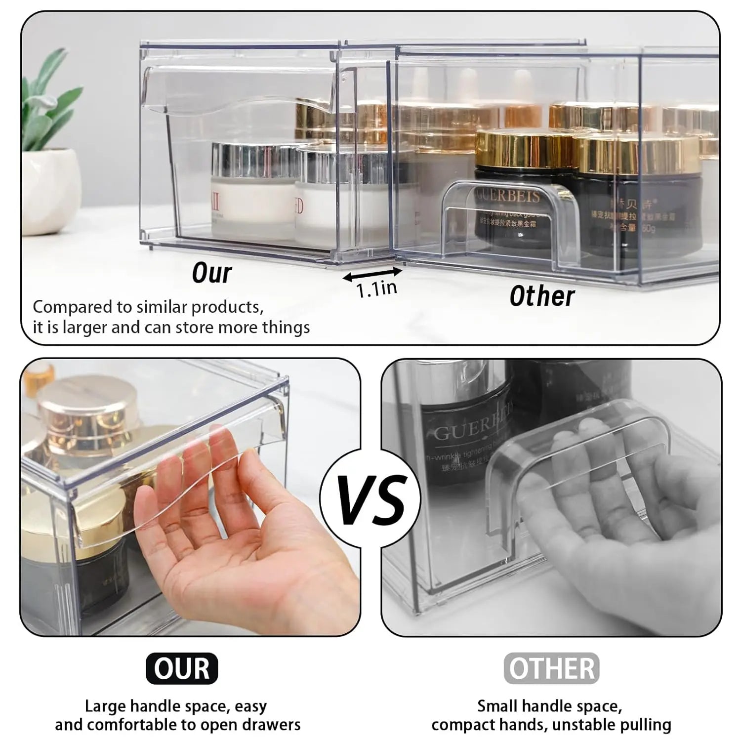 Stacked prevents products from moving when drawers are opened