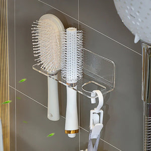 Transparent Hair Brush Rack Perfect for storing hair styling tools, free from chemical exposure. Easy wall mounting for an organized and clutter-free bathroom environment. In stock and ready for immediate use.