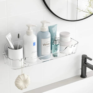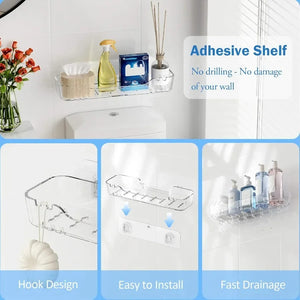 Versatile Use: Functions perfectly as an adhesive shelf or organizer in the bathroom, kitchen, or any area needing stylish, clear storage.