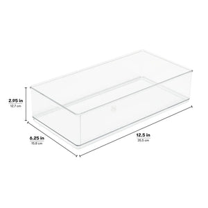 Wide XL Drawer Insert Cabinet Organizer, Clear, 12. 5" x 3. 12" x 2. 95" As seen on Netflix Clear plastic construction for easy visibility Keep your home organized and tidy Easily find what you need with the clear plastic construction Measures 12. 5" x 3. 12" x 2. 95" Mix and match with other storage solutions