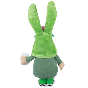This adorable gnome is dressed in a green outfit and a hat with bunny ears